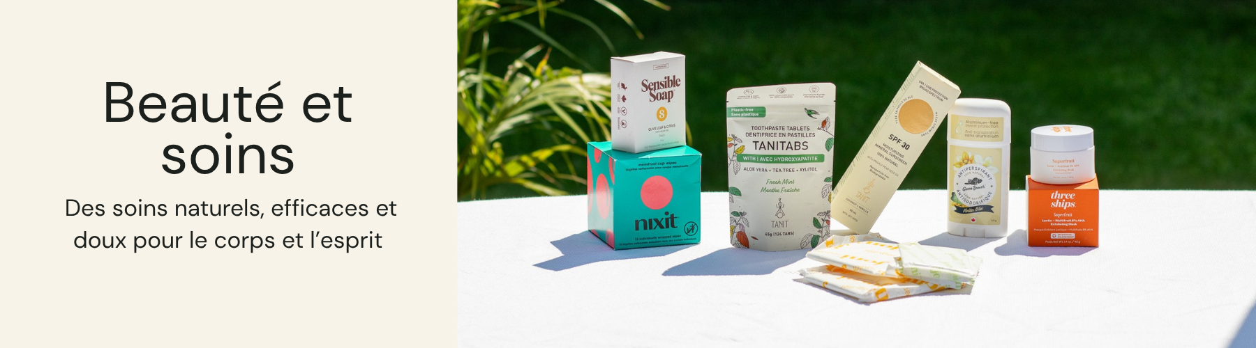 Des produits doux, sécuritaires et durables pour prendre soin de toi, naturellement.